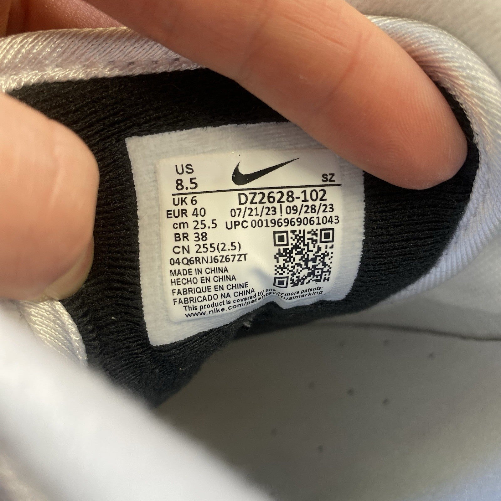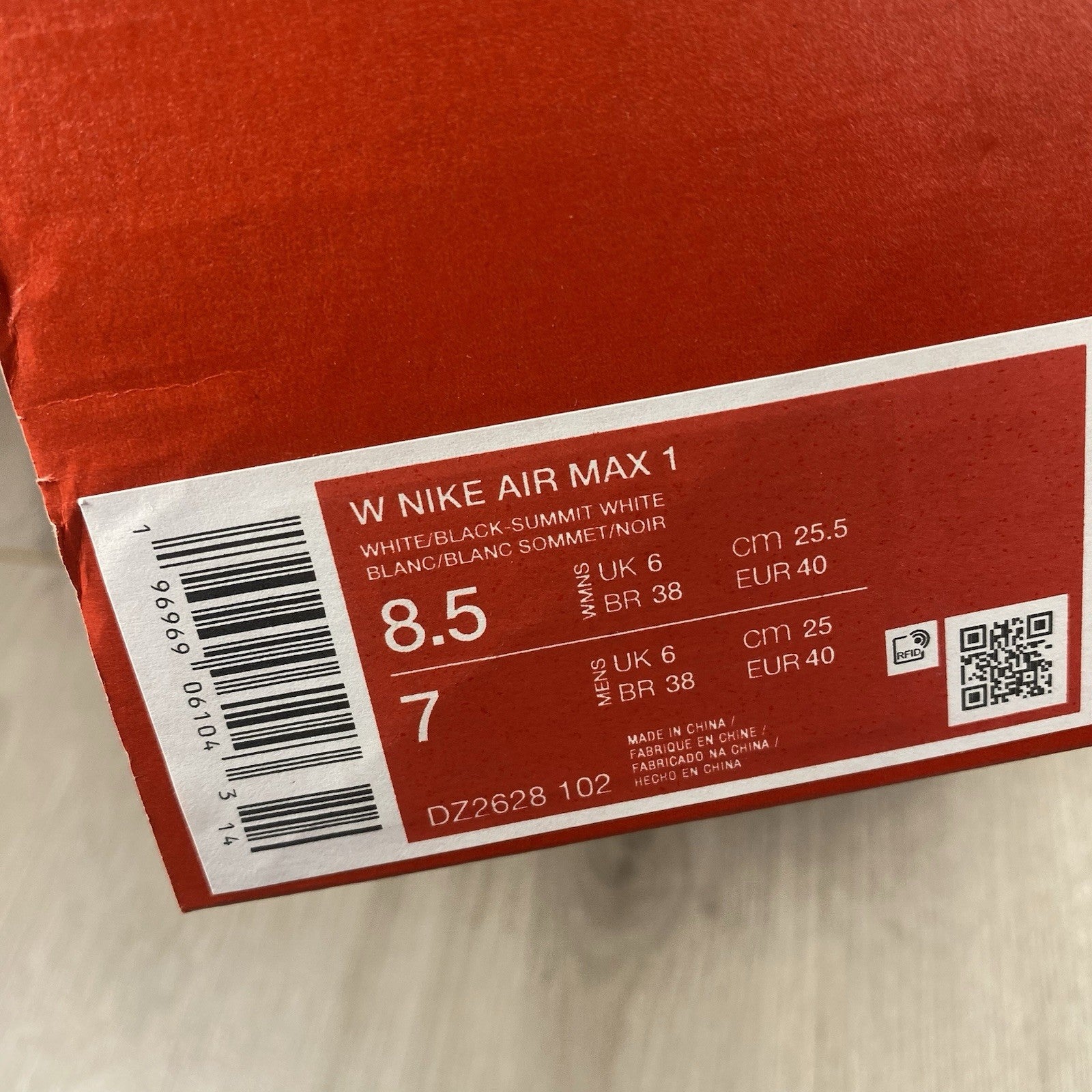 Nike Air Max 1 Trainers Shoes White Black Size UK6 US8.5 EU40 DZ2628-102