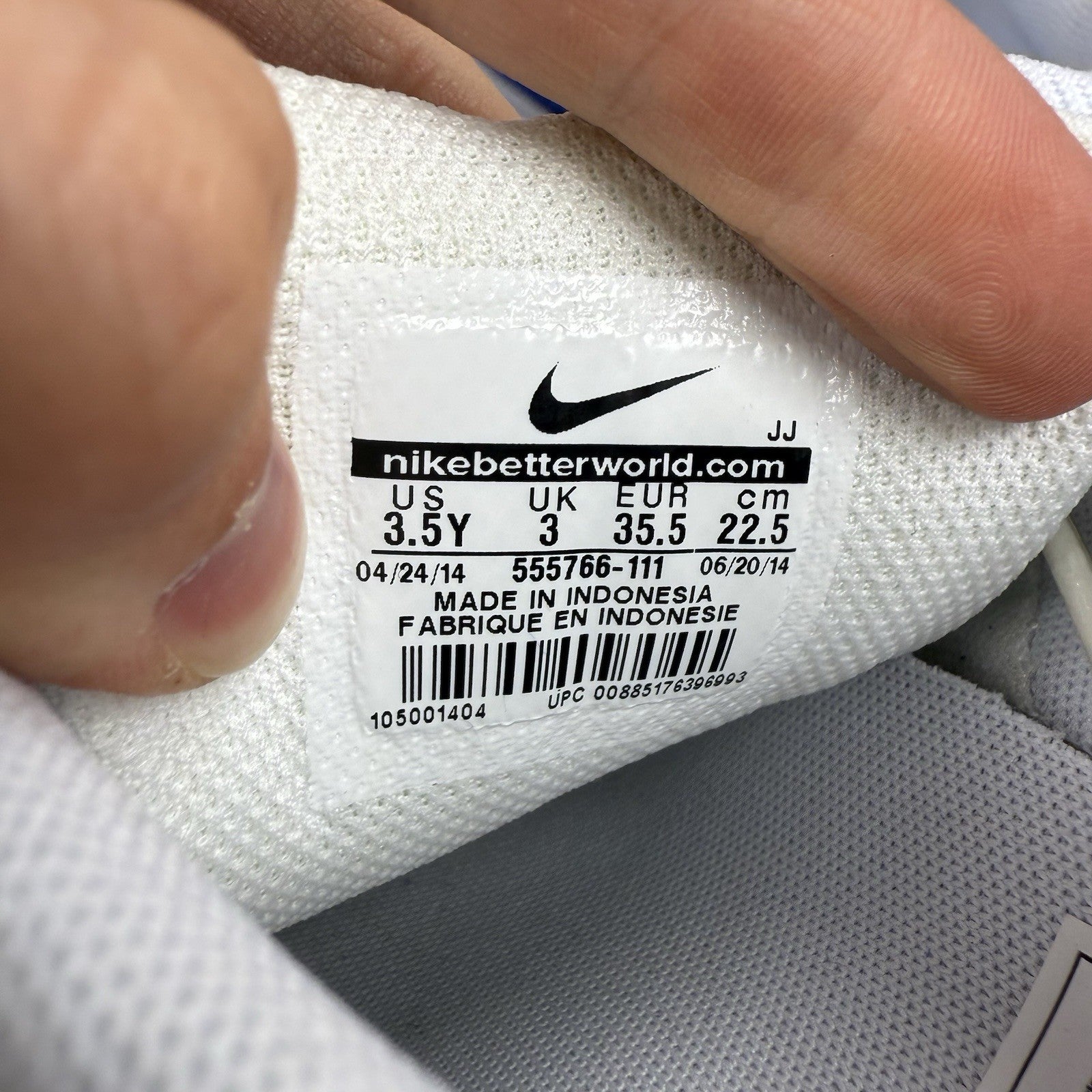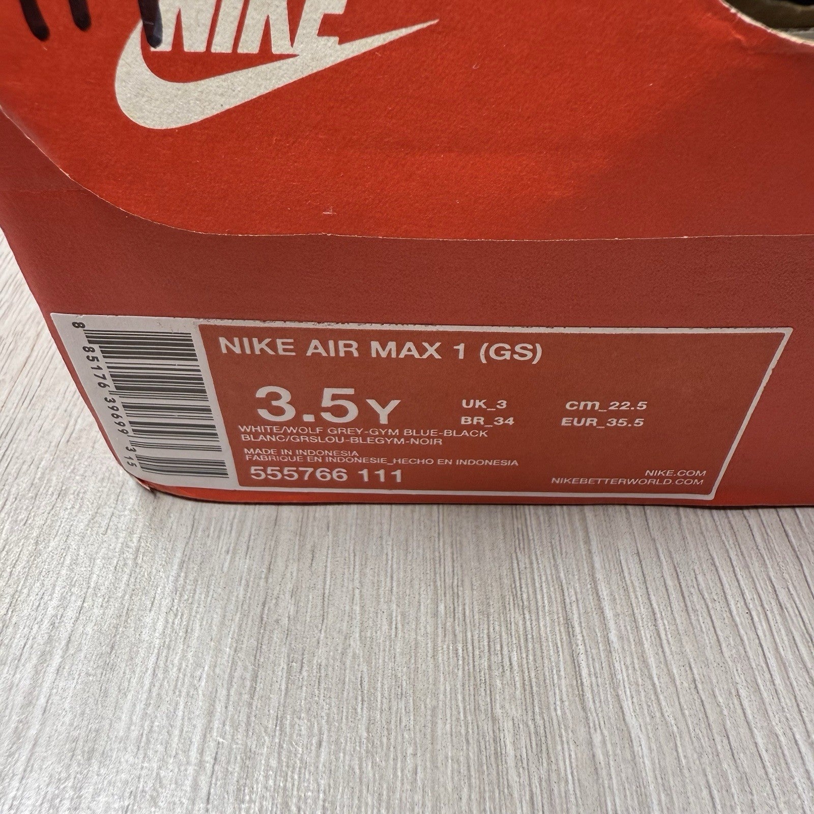 Nike Air Max 1 Trainers White Gym Blue Size UK3 US3.5 EU35.5 555766-111