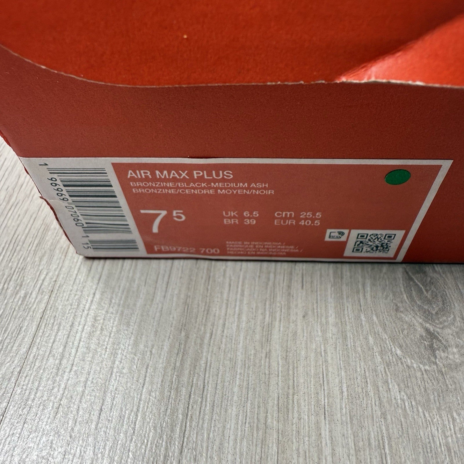 Nike TN Air Max Plus Trainers Bronzine Black Size UK6.5 US7.5 EU40.5 FB9722-700